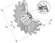 • 鏈傳動惰輪輪齒單元作為組合型號的例子 KSR15-B0-06-10-20-08 KSR 鏈傳動惰輪輪齒單元 15 軸承內(nèi)徑 B0 帶偏心套的外球面球軸承, 系列 RAE..-NPP 06 惰輪節(jié)圓 1/16