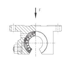 - 在主載荷方向的基本額定載荷; 基本額定載荷僅適用于淬硬(670+170 HV)及磨削過的作為滾道的軸 根據(jù) ISO/CD 14 728-1 的基本額定載荷(最大值)