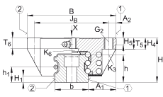 • 對(duì)于從上面安裝: 最大的中間螺紋孔的螺紋深度 T6 + 3 mm