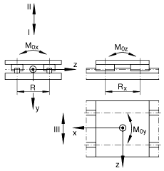 • 基本額定載荷:載荷方向 Z III: 當(dāng)載荷均勻分布在四個(gè)直線球軸承上的基本額定載荷。 基本載荷和扭矩不能同時(shí)增加。