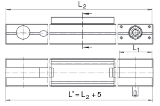 • L2 = 總行程 + L + 2 x L1 L tot = 總行程 + L + 2 x L1 + 5 總行程= 有效行程 + 2 x S S指適合于特殊應用的安全范圍,應該至少為40mm;總行程單位為mm。 最大支承軌長度 L2 = 8000 mm