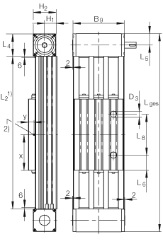 • L2 = 總行程 + L1 + 12 L tot = 總行程 + L1 + 12 + 2 x L4 總行程= 有效行程 + 2 x S(mm) 注意:允差S指一個安全范圍,應該至少為85 mm。 最大支承軌長度8000 mm。