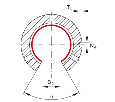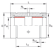- 公差:H13 孔在軸承長度 L 上是對稱的。