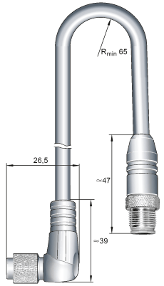 - 2米長(zhǎng)的電纜,用于連接電子評(píng)估單元SRMB01和一個(gè)測(cè)量頭SRMH..., 測(cè)量頭一側(cè)有90 的彎插頭(請(qǐng)注意電纜出口方向)
