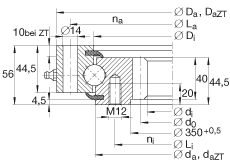 - 適用于帶定心套的軸承(后綴 ZT) 定心套長度(見零件圖) 公差:-IT8