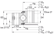 • 適用于帶定心套的軸承(后綴 ZT) 定心套長(zhǎng)度(見(jiàn)零件圖) 公差:-IT8